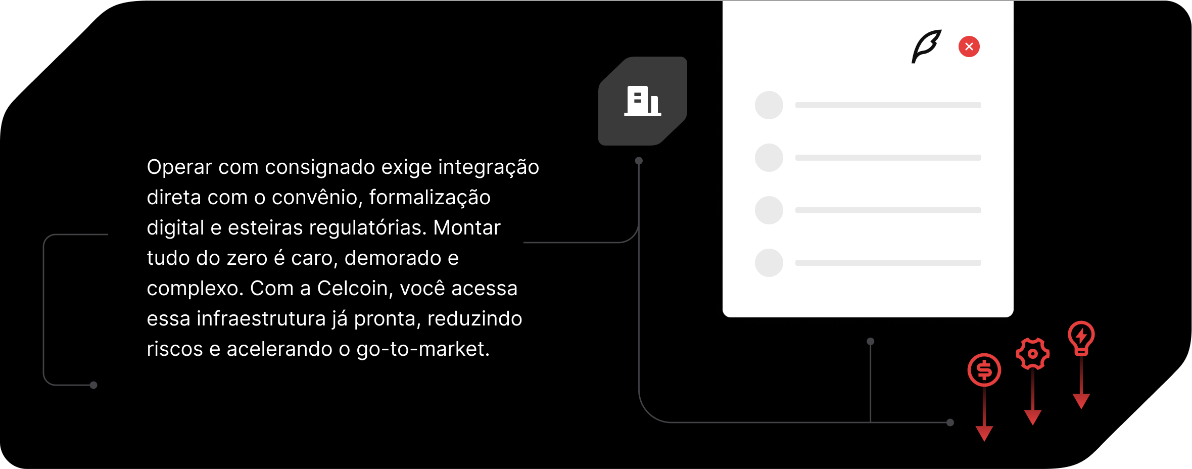 A Celcoin oferece todas as camadas necessárias para que empresas financeiras e não financeira operem com Crédito consignado com nossa tecnologia As a Service.